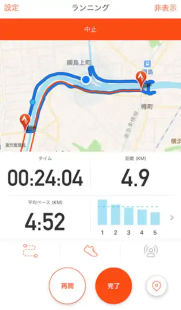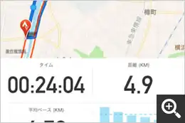 走行タイム画面、コース軌跡画面のスクリーンショットを