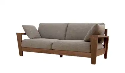 府中家具の土井木工が製作する無垢ソファは、木の温もりと心地よさを大切にした一品です。50mm厚の無垢材を丁寧に組み上げ、美しい木目のアームが空間に上質な彩りを添えます。クッションには高密度ウレタンとマザーグースフェザーを使用し、ふんわりと体を包み込む優しい座り心地。素材の魅力と職人の技が調和した、暮らしに寄り添う府中家具ならではのソファです。